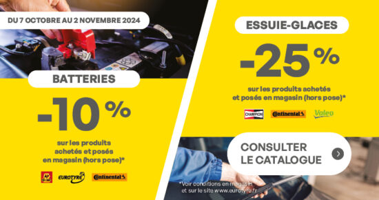 Promo entretien auto : Batteries et Essuie-glaces Du 6 octobre au 15 novembre 2025, profitez de la promotion Entretien auto hiver […]